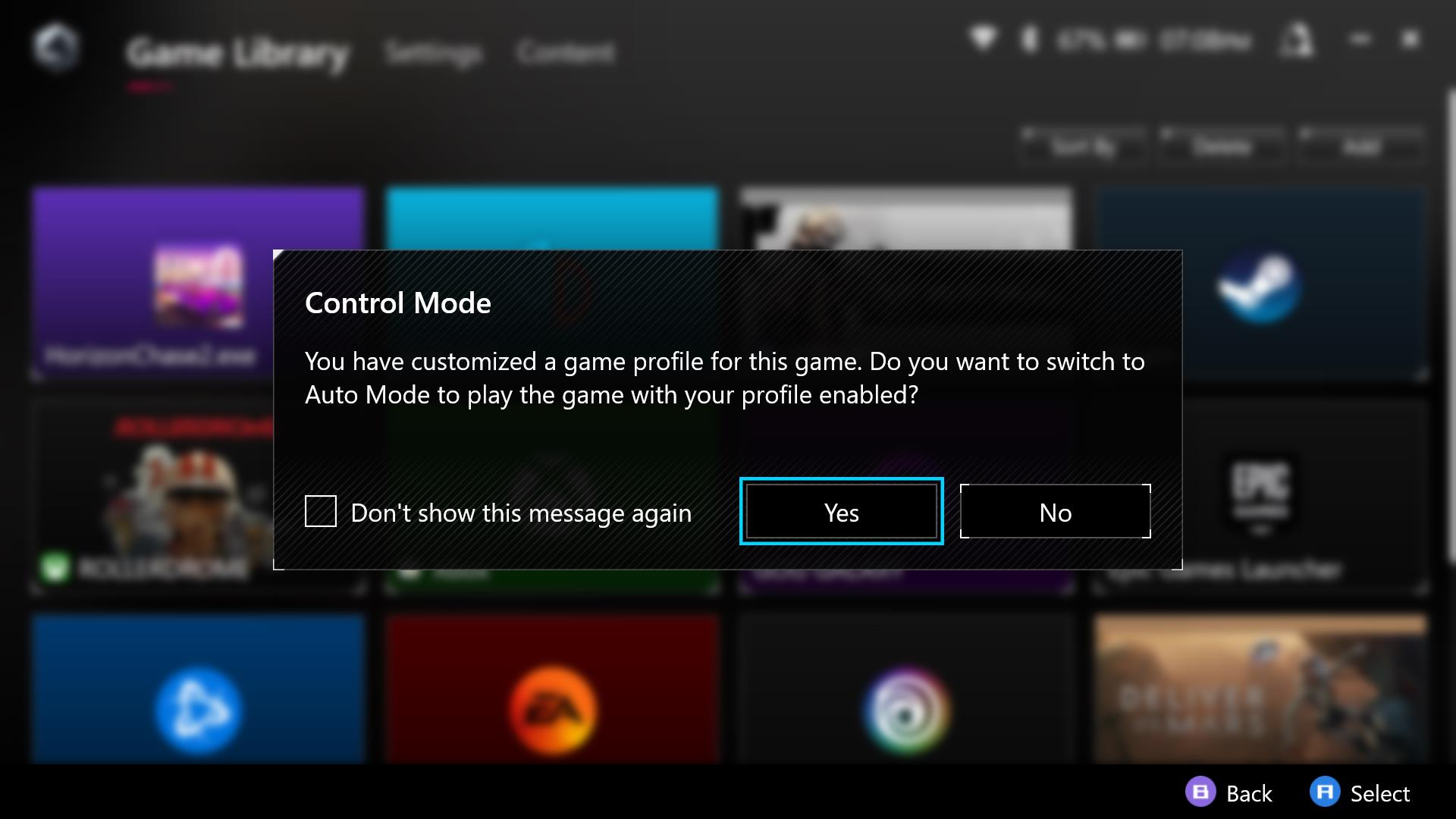 - Highlight your installed game or add a game in Armoury Crate SE and press the X button to open up the Game Profile.
