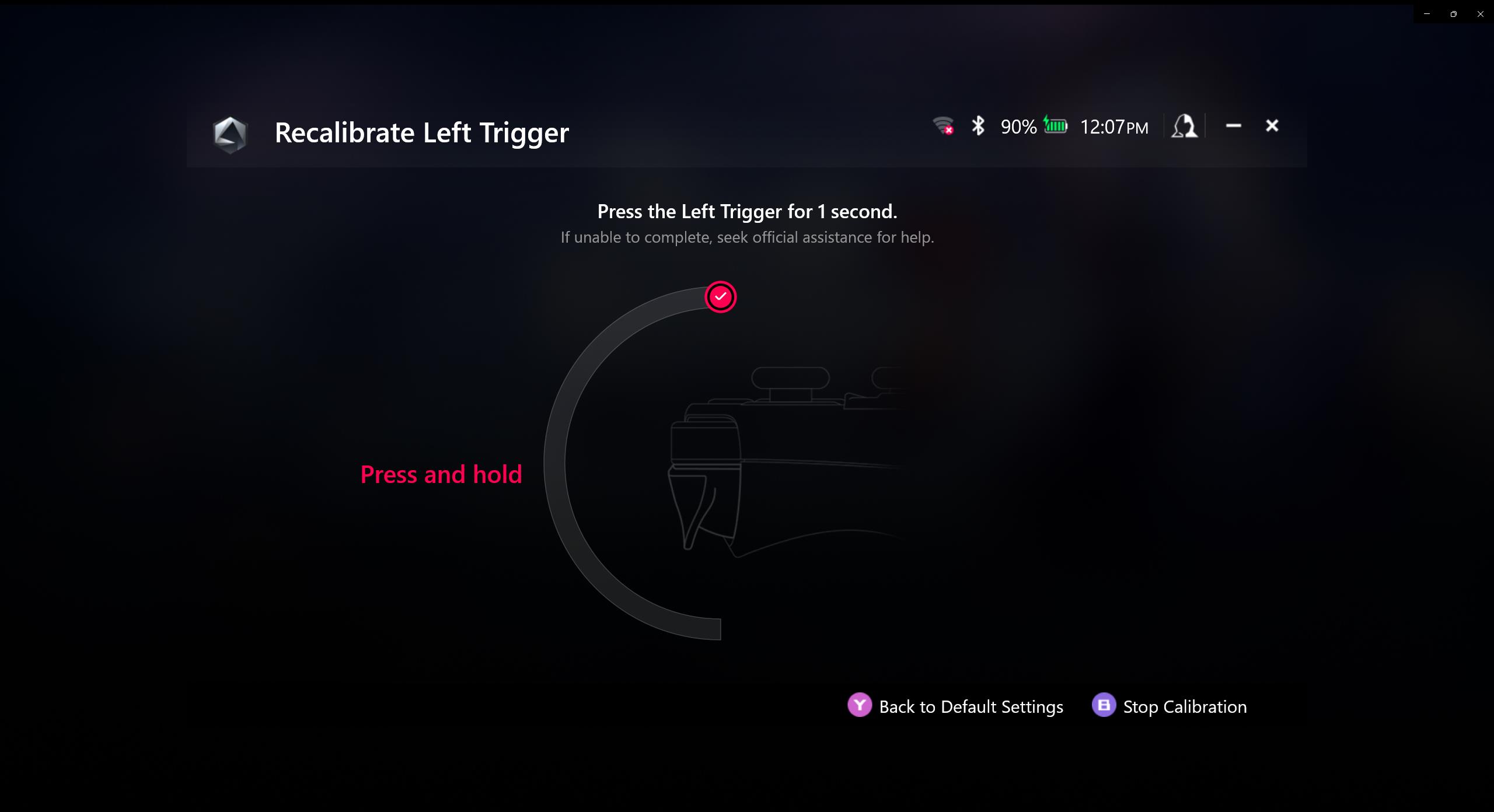 - Calibrating the Triggers are pretty simple, press A to start the calibration, wait one second and then press and hold the trigger you’re calibrating.